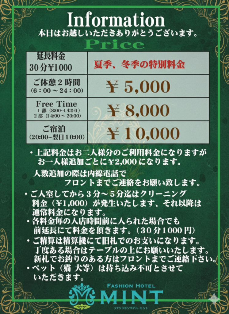 GW期間の料金改定のお知らせ 2026年4月29日 最終更新日時 : 2026年4月29日 ホテルミント いつも御利用いただき誠にありがとうございます。4月29日から5月6日まで特別料金に改定致します。皆様の御利用スタッフ一同心よりお待ち申し上げます。 FacebookXBlueskyCopy